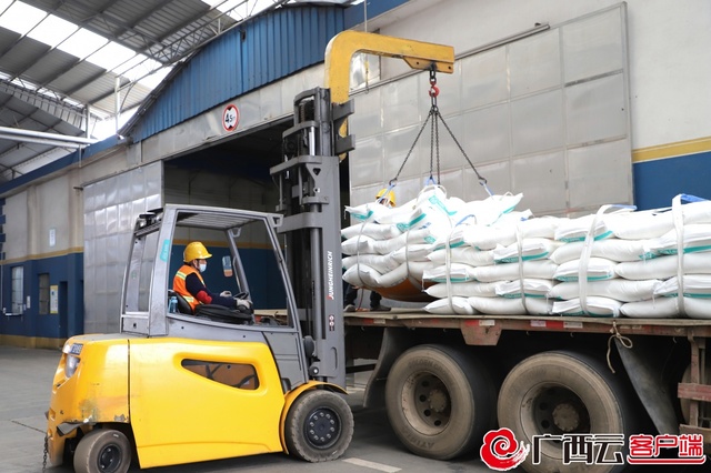 榨季进行时,广西半岛web版登录入口良圻制糖公司白砂糖装车忙。唐欣 摄
